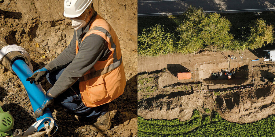 Inlinerverfahren unseres Mitgliedsunternehmens Rädlinger primus line zur Instandhaltung von Asbestzement-Druckrohrleitungen als emissionsarmes Verfahren BT 62 von DGUV anerkannt und gelistet.