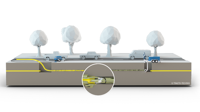 - Das dynamische Berstlining mit GRUNDOCRACK® für die Erneuerung Rohren aus spröden Materialien eignet sich besonders für Anwendungen von Schacht zu Schacht.